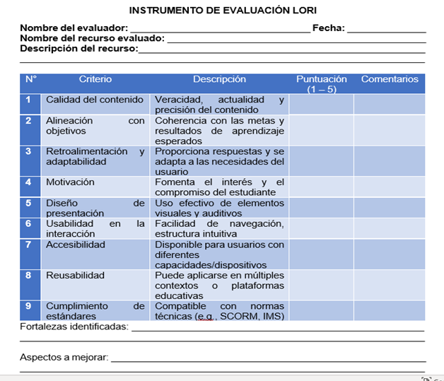 LORI – Learning Object Review Instrument (Instrumento para la Evaluación de Objetos de Aprendizaje)