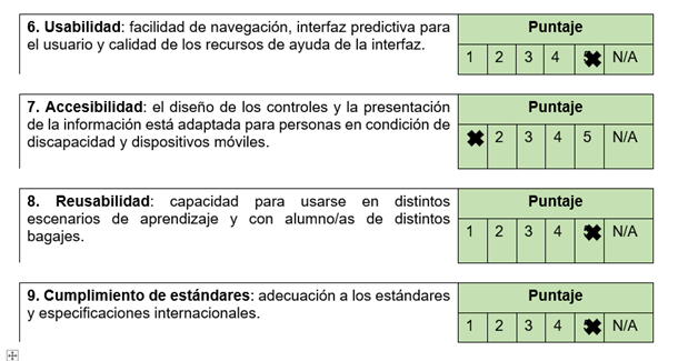 - Enfoque integral: Evalúa desde la calidad del contenido hasta la accesibilidad, interoperabilidad, y motivación.